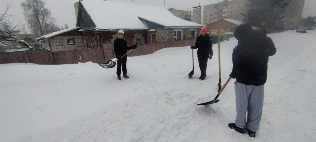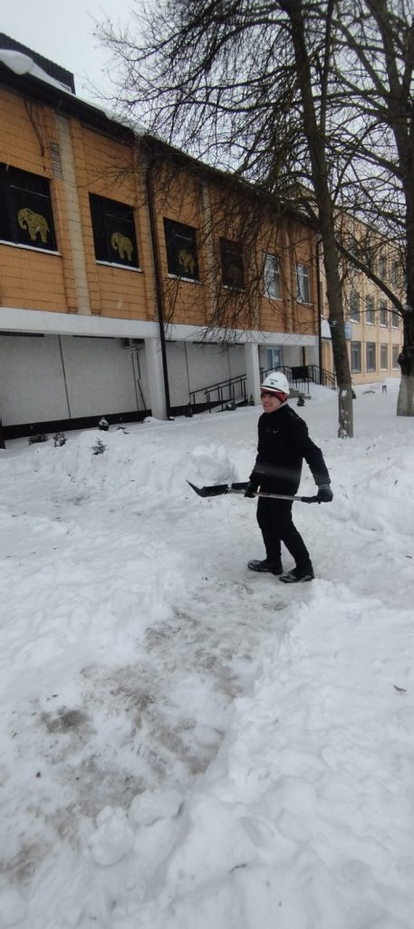 В связи с обильным снегопадом и сложными погодными условиями учащиеся и работники учреждения образования «Борисовский государственный строительный колледж» активно приняли участие в работах по уборке снега.